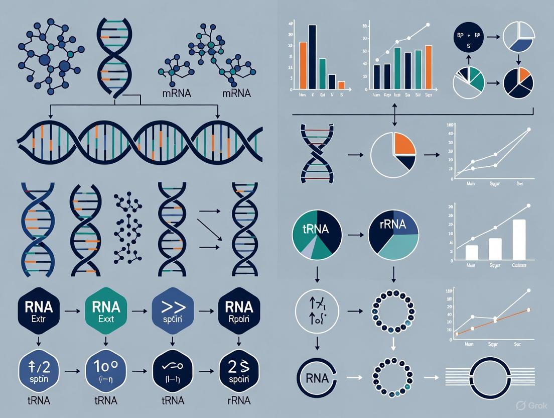 The composition of the microbial transcriptome is dominated by rRNA, which typically comprises 82-90% of a cell's total RNA pool and serves as a fundamental structural component of ribosomes [8]. Despite its abundance, mRNA is the primary target for most functional studies because its abundance often correlates with protein-coding gene activity. Furthermore, the growing field of epitranscriptomics has revealed that RNA modifications serve as critical regulatory strategies for pathogens, influencing their adaptability, virulence, and replication during host-microbe interactions [10]. These modifications, including m6A, m5C, and ac4C on mRNAs, tRNAs, and rRNAs, represent a sophisticated layer of post-transcriptional control that microbes exploit to survive in dynamic environments.