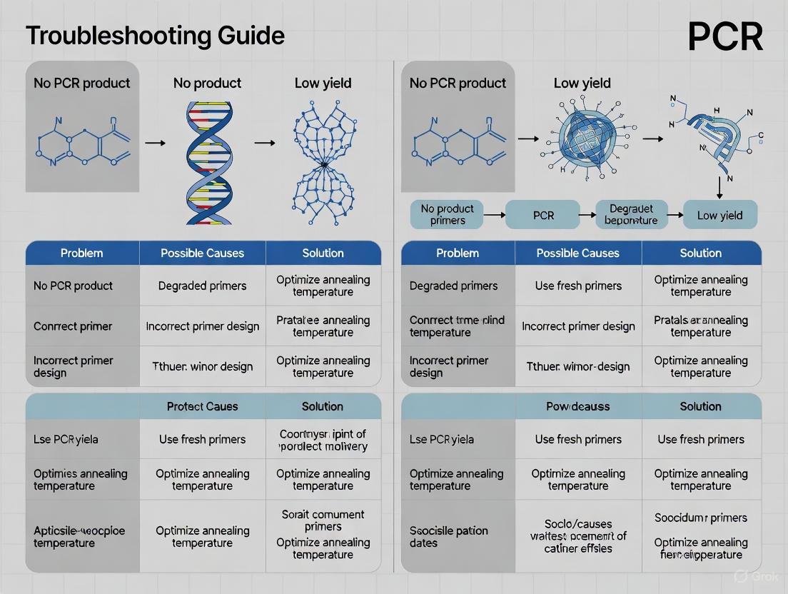 This article provides a systematic framework for researchers, scientists, and drug development professionals to diagnose and resolve the common yet critical issues of no product or low yield in Polymerase...